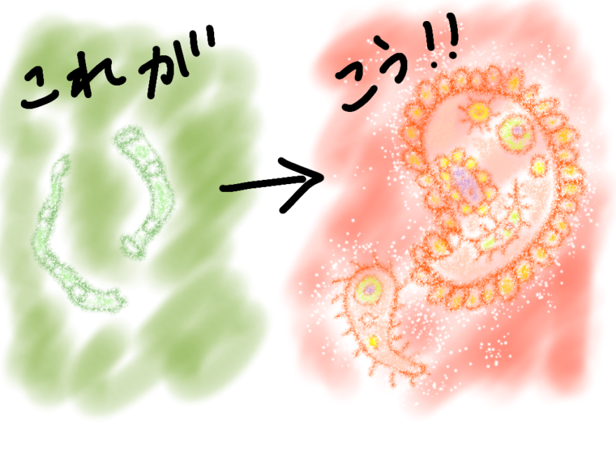 ペイズリー以外にもいろんな形の微生物に変化していました。